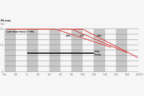 主閥標(biāo)準(zhǔn)1“- 150磅,PFA內(nèi)襯,手動(dòng)操作(可選的SDV隔膜閥,SCP圓柱形旋塞閥或SBV球閥)。